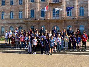 Les élèves travaillent individuellement ou en binôme. Ils marchent dans la mairie (espace délimité) pour chercher les symboles de la République Française.