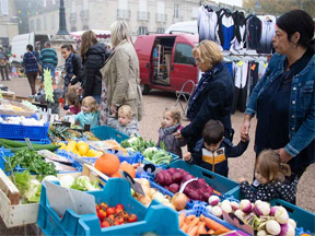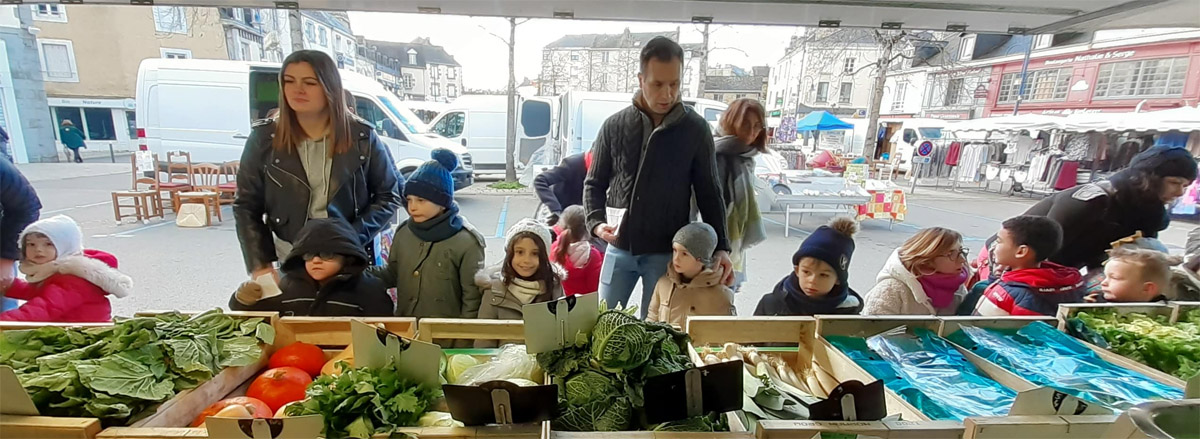 - sortie au marché avec la découerte de son environnement proche, y retourner plusieurs fois pour voir les fruits et légumes de saison